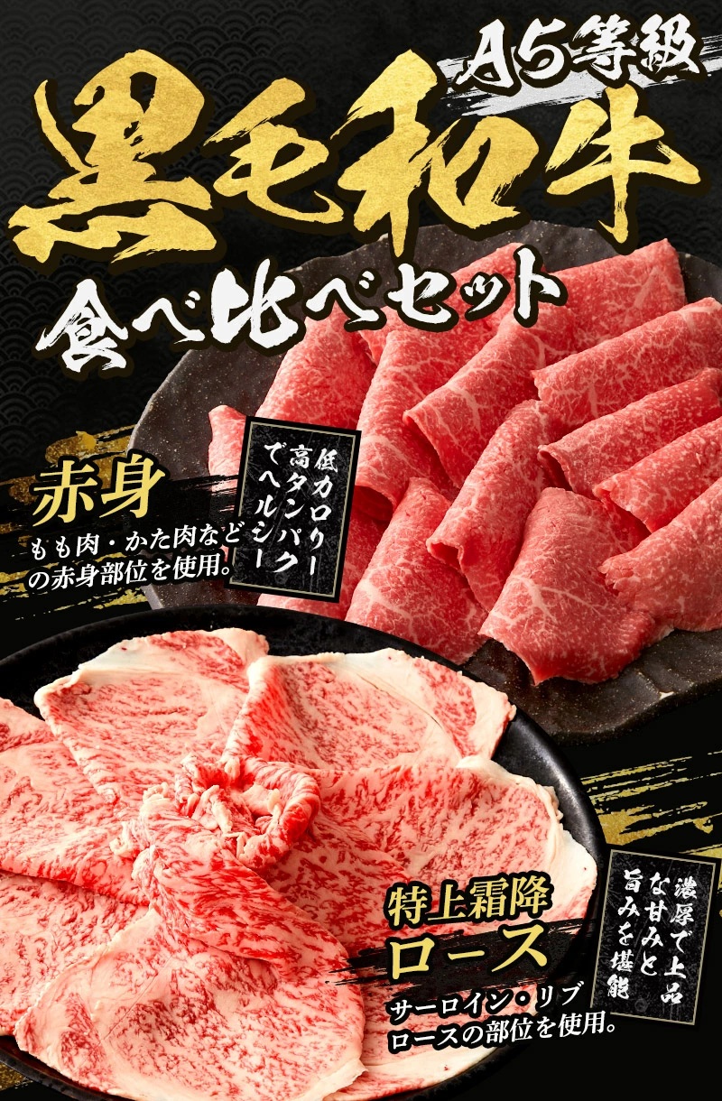 A5等級黒毛和牛特上霜降ロース・赤身食べ比べセット すき焼き・しゃぶしゃぶ